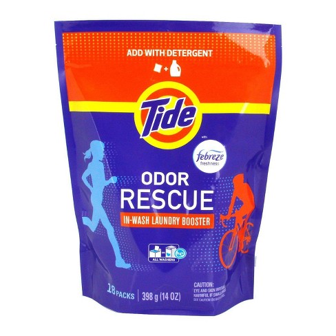 Tide Odor Rescue In-Wash Laundry Booster Pacs, 27 Count per pack, 21 ... Product Description. Tide Odor Rescue In-wash Laundry Booster Pacs help eliminate odors at the source* by cleaning deep into the fibers. The Odor Defense technology breaks down built in odors and layers of body soil and dinge, which can lead to odor issues over time.